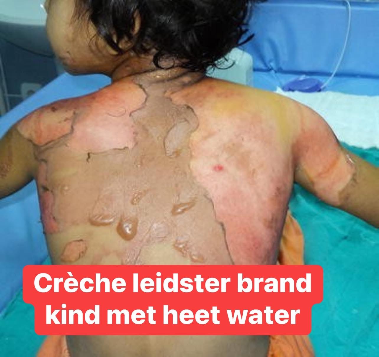 Peuter krijgt brandplekken door creche leidster is vergeten water aan te lengen.