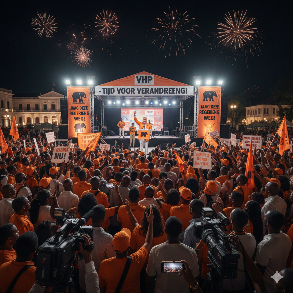 PARAMARIBO, 31 december 2025 – Terwijl Suriname zich opmaakt voor de jaarwisseling, is de politieke bom gebarsten. De Vooruitstrevende Hervormings Partij (VHP) heeft in een felle verklaring het volk opgeroepen de huidige regering weg te jagen. Deze oproep markeert een historisch dieptepunt in de politieke stabiliteit van het land, slechts maanden na de formatie van het nieuwe kabinet.